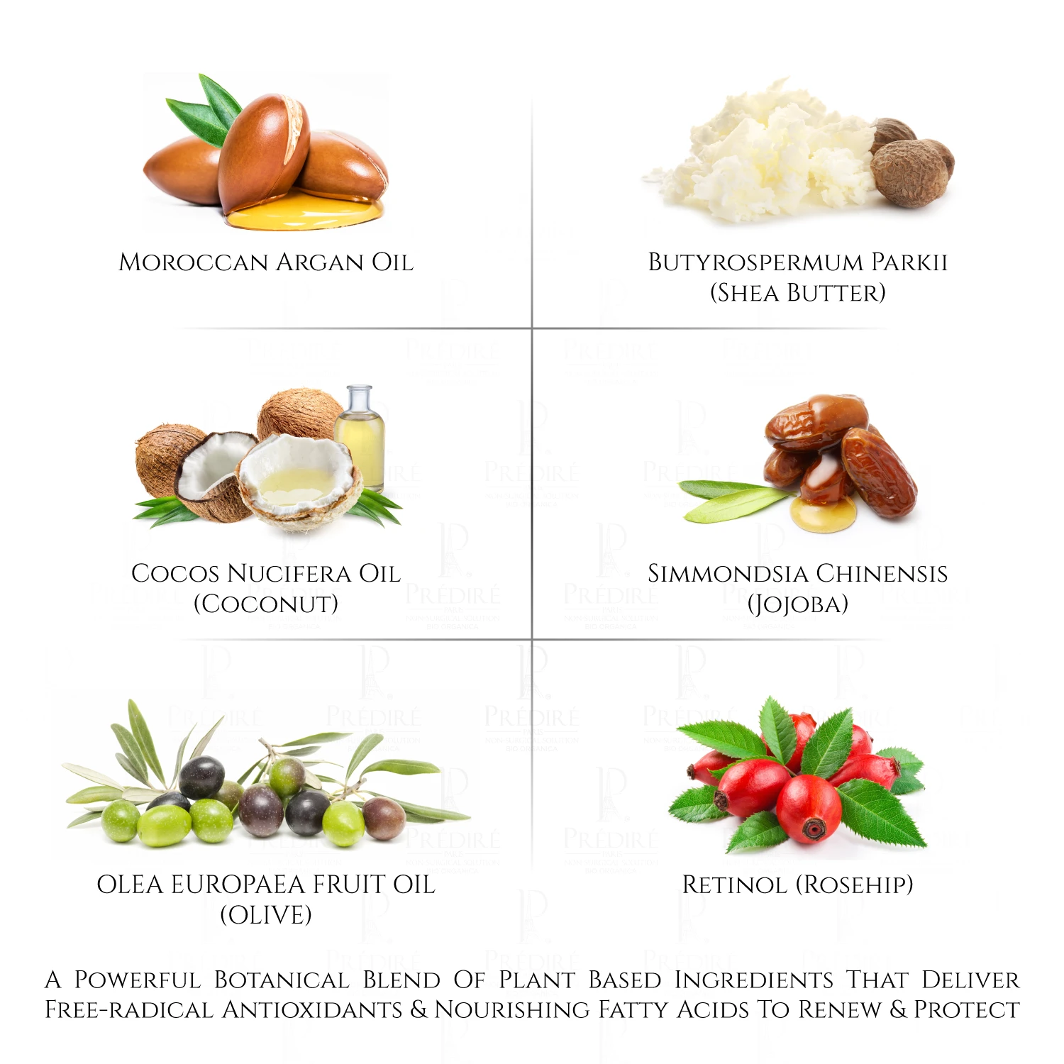 Cyclopentasiloxane, Dimethiconol, Cyclotetrasiloxane, Parfum, Cyclopentasiloxane, Cyclohexasiloxane, Argania Spinosa Kernel Oil, Fullerenes, Squalane, Cocos Nucifera (Coconut) Oil, Simmondsia Chinensis (Jojoba) Seed Oil, Butyrospermum Parkii (Shea Butter) Oil, Persea Gratissima (Avocado) Oil, Olea Europaea (Olive) Fruit Oil, Kyounin Yu, Ricinus Communis (Castor) Oil, Vitis Vinifera (Grape) Seed Oil