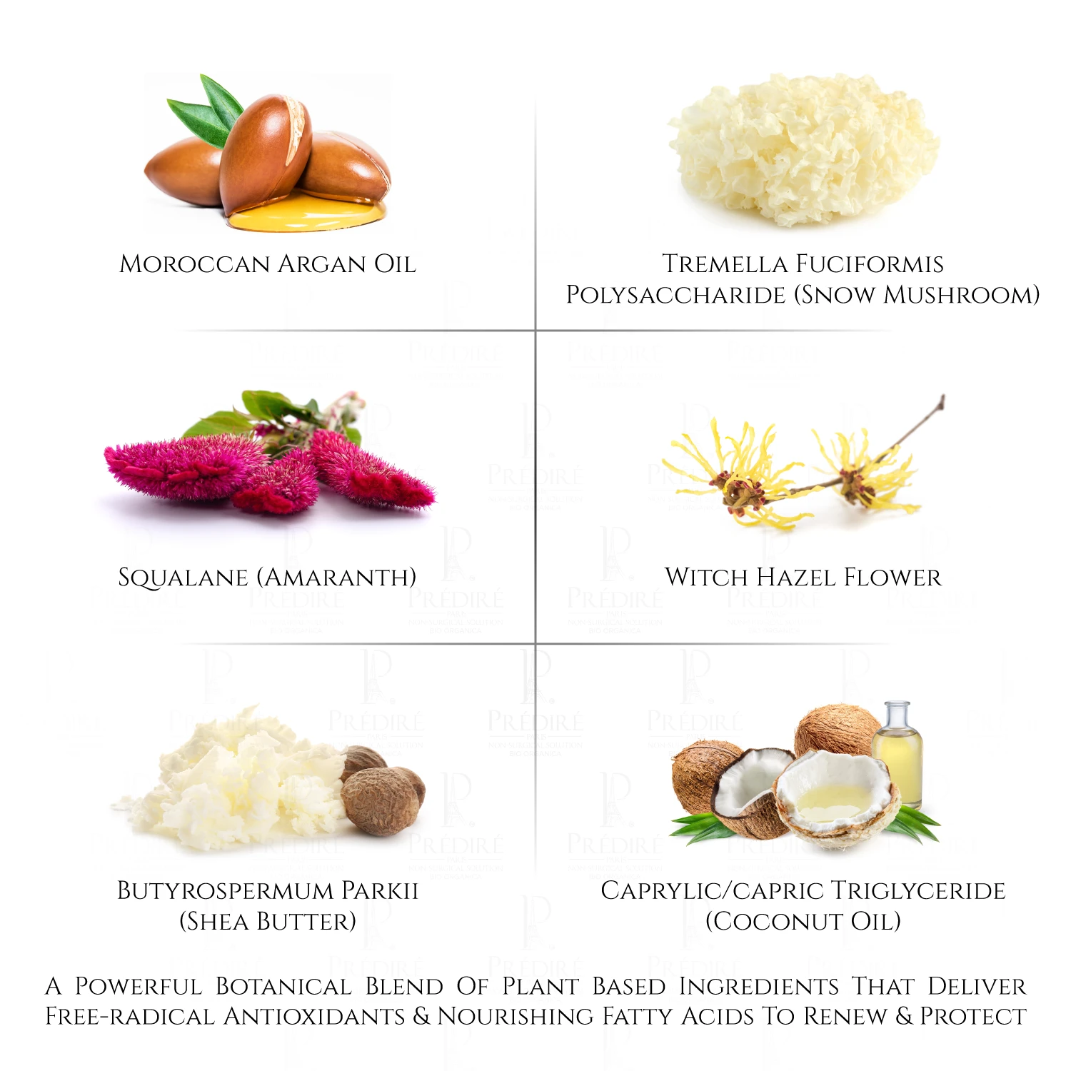 Ingredients: Water, Dimethicone, Argania Spinosa Kernel Oil, Cyclohexasiloxane, Butyrospermum Parkii  (Shea Butter), Propylene Glycol, Caprylic/capric Triglyceride, Spirulina Maxima Extract, Squalane, Hydrolyzed Collagen, Hamamelis Virginiana  (Witch Hazel) Extract, Tremella Fuciformis Polysaccharide, Peg-100 Stearate, Simmondsia Chinensis  (Jojoba) Seed Oil, Trehalose, Cetearyl Alcohol, Betaine, Glyceryl Stearate, Carboxymethyl Chitosan, Avena Sativa (Oat) Peptide, Yeast Polysaccharides, Tocopherol, Dextran, Panthenol, Tripeptide-1, Avena Sativa  (Oat) Bran Extract, Triticum Vulgare  (Wheat) Germ Extract, Xanthan Gum, Ascorbic Acid, Sodium Pca, Vitis Vinifera  (Grape) Flower Cell Extract, Hydroxyethylcellulose, Panax Ginseng Root Extract, Sodium Hyaluronate, Peg-40 Castor Oil, Collagen, Retinol, Phenoxyethanol, Parfum, Malus Domestica Fruit Cell Culture Extract.