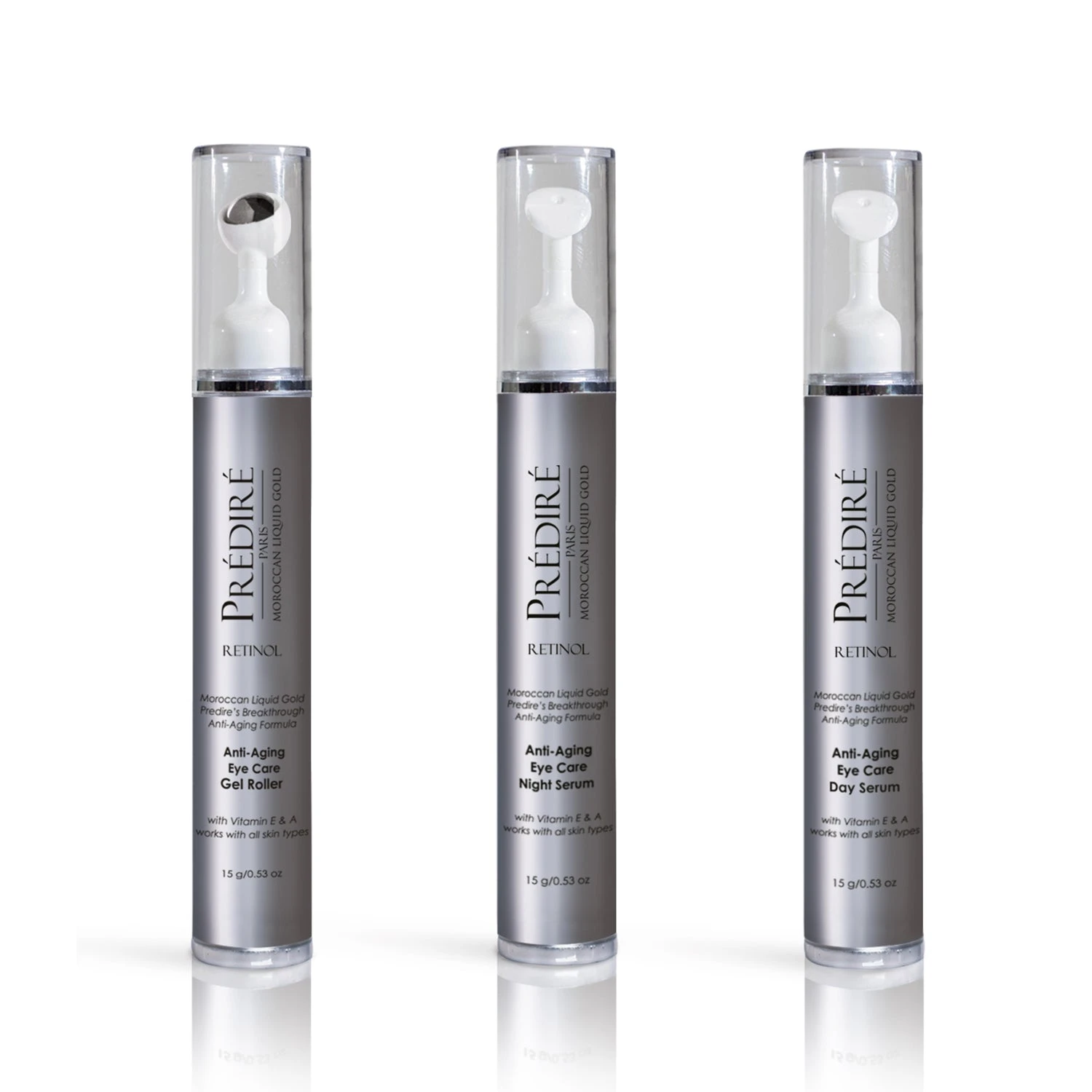 The Prédiré Paris Anti-Aging Eye Care System is designed to infuse nutrients and regenerate the skin’s appearance, reduce puffiness, and help to cool and soothe the skin around the eyes. Providing needed hydration to the under-eye-area, absorbing quickly and penetrating deep into the layers of the skin minimizing wrinkles & crow’s feet, for a bright and revitalizing glow. Working throughout the day and through the night for all day 24-hour coverage.