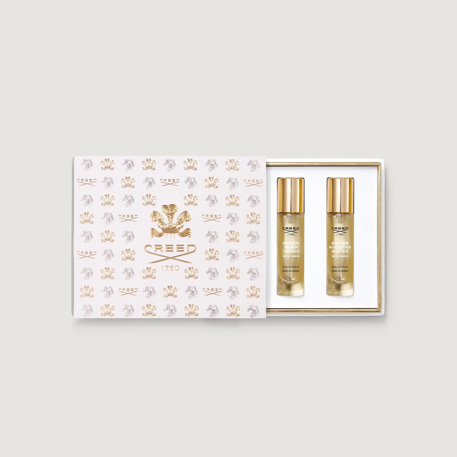 An exclusive 3-piece gift set featuring Aventus, Green Irish Tweed & Silver Mountain Water.